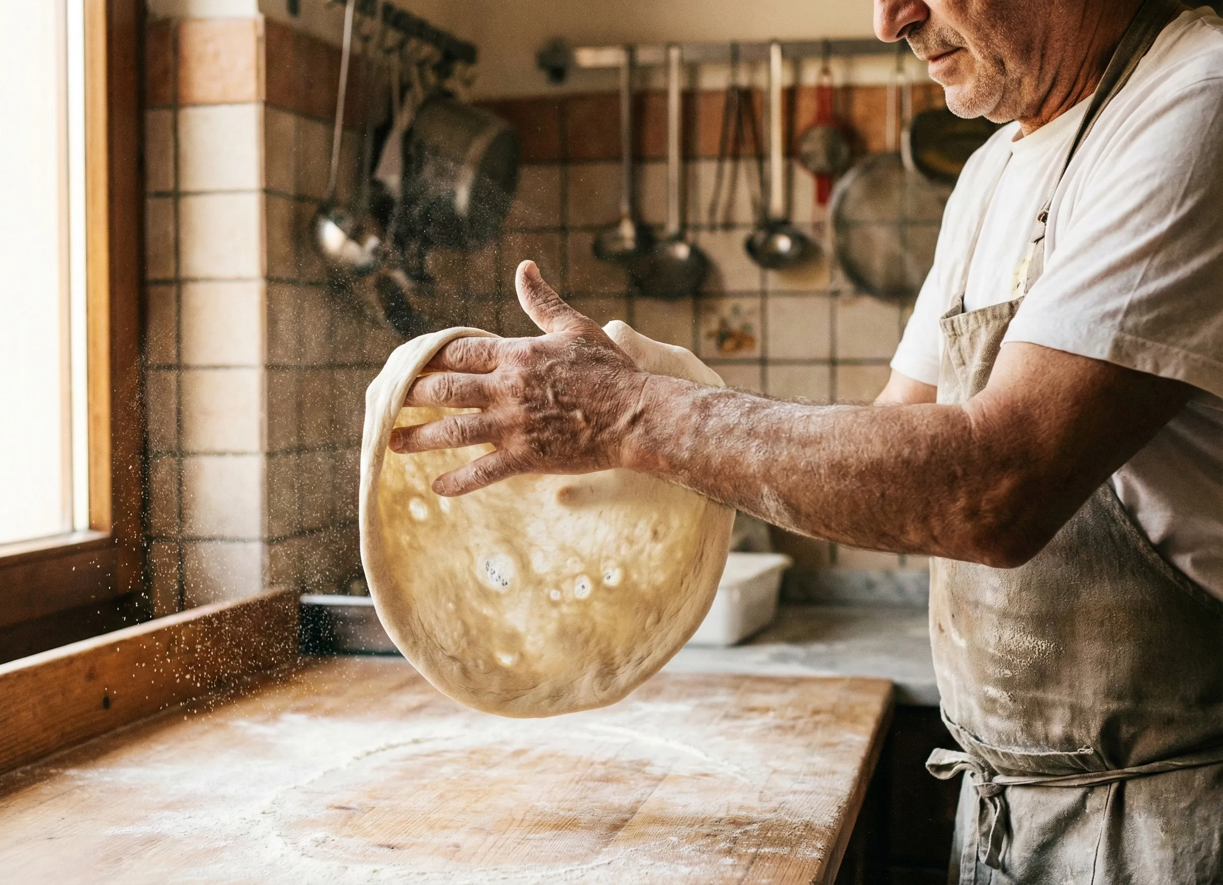 Oubliez définitivement votre rouleau à pâtisserie. Utilisez vos doigts pour étirer la pâte avec une grande délicatesse. Cela préserve les bulles d’air, ce qui est vraiment une question de goût.