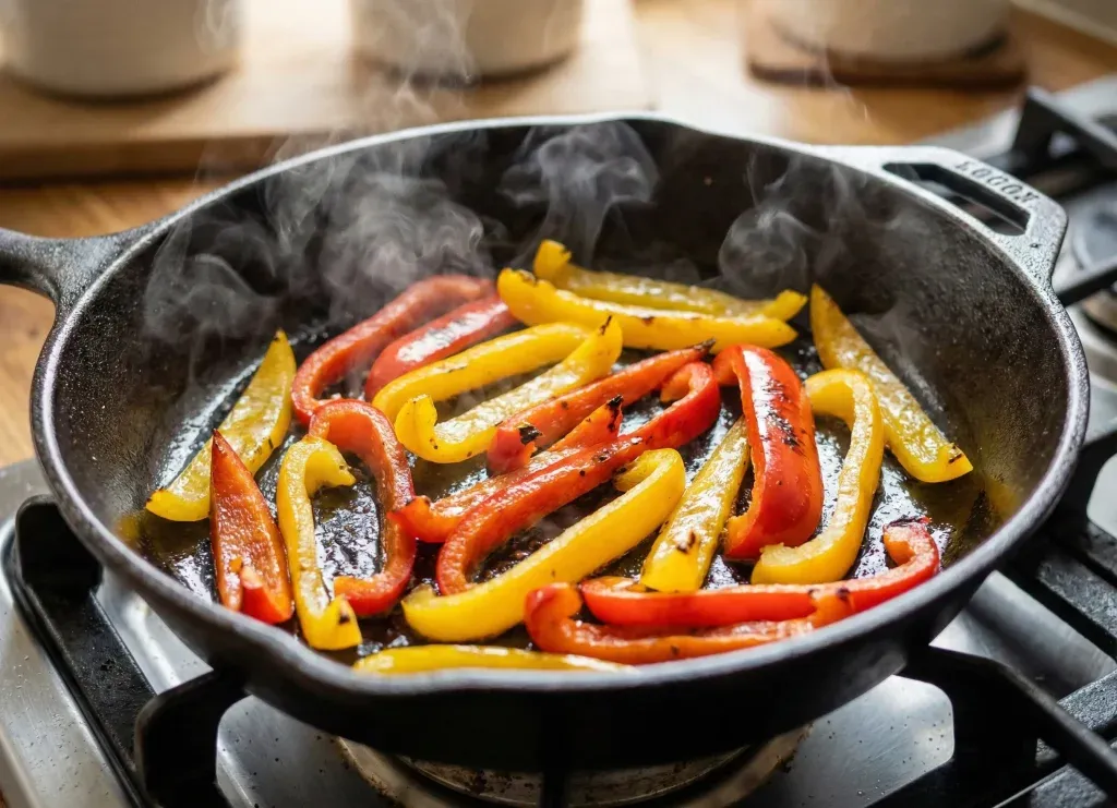 Passez les légumes à la poêle quelques minutes seulement avec un filet d’huile. La chaleur fait évaporer l’eau de végétation. Cela évite que la pâte devienne molle au centre. Vos poivrons seront plus digestes.