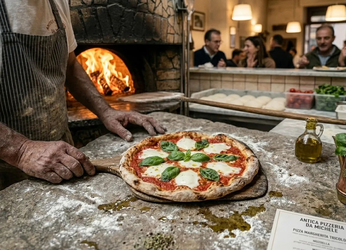 La vraie pizza napolitaine exige une maîtrise totale. On pétrit la pâte uniquement à la main. La cuisson se fait exclusivement dans un four à bois traditionnel.