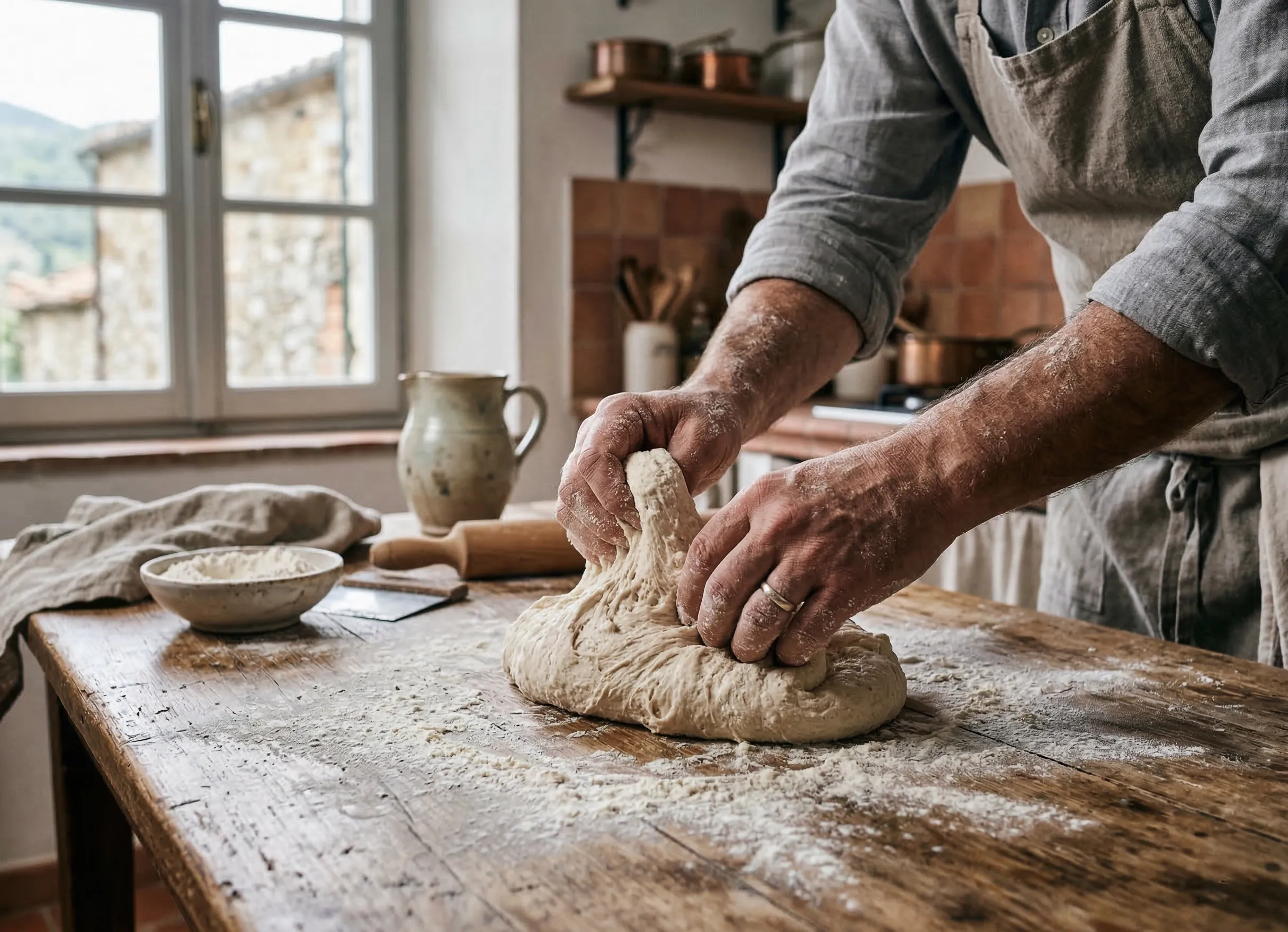 Une hydratation haute favorise un alvéolage sauvage et une mie aérée. La vapeur d’eau fait gonfler les bords au four. C’est le secret des croûtes bien gonflées.