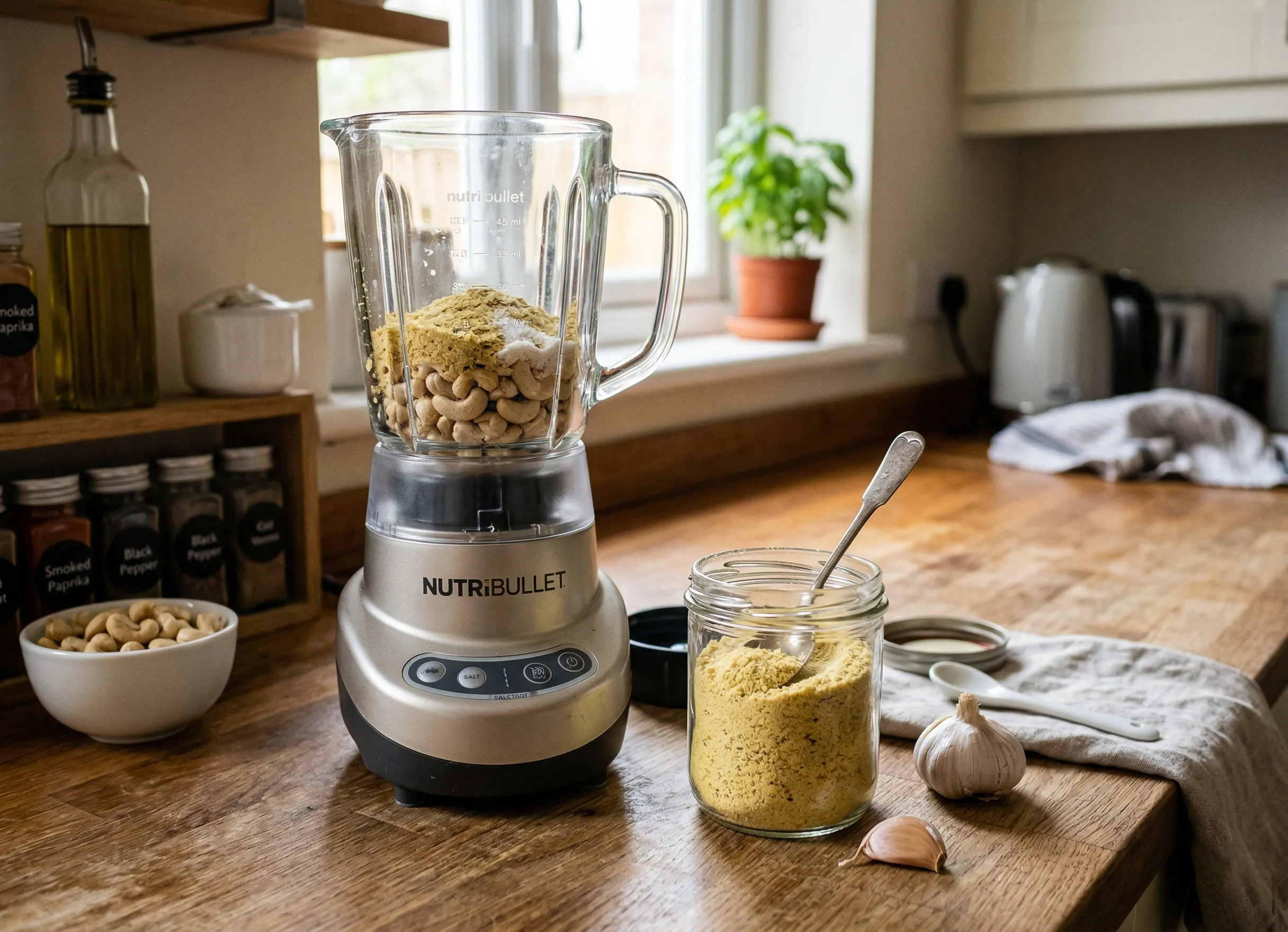 Mixer des noix de cajou avec de la levure maltée. Ajoutez une pincée d’ail en poudre et du sel. Vous obtenez une poudre fine et savoureuse. C’est l’alternative préférée des végétaliens pour saupoudrer les plats.