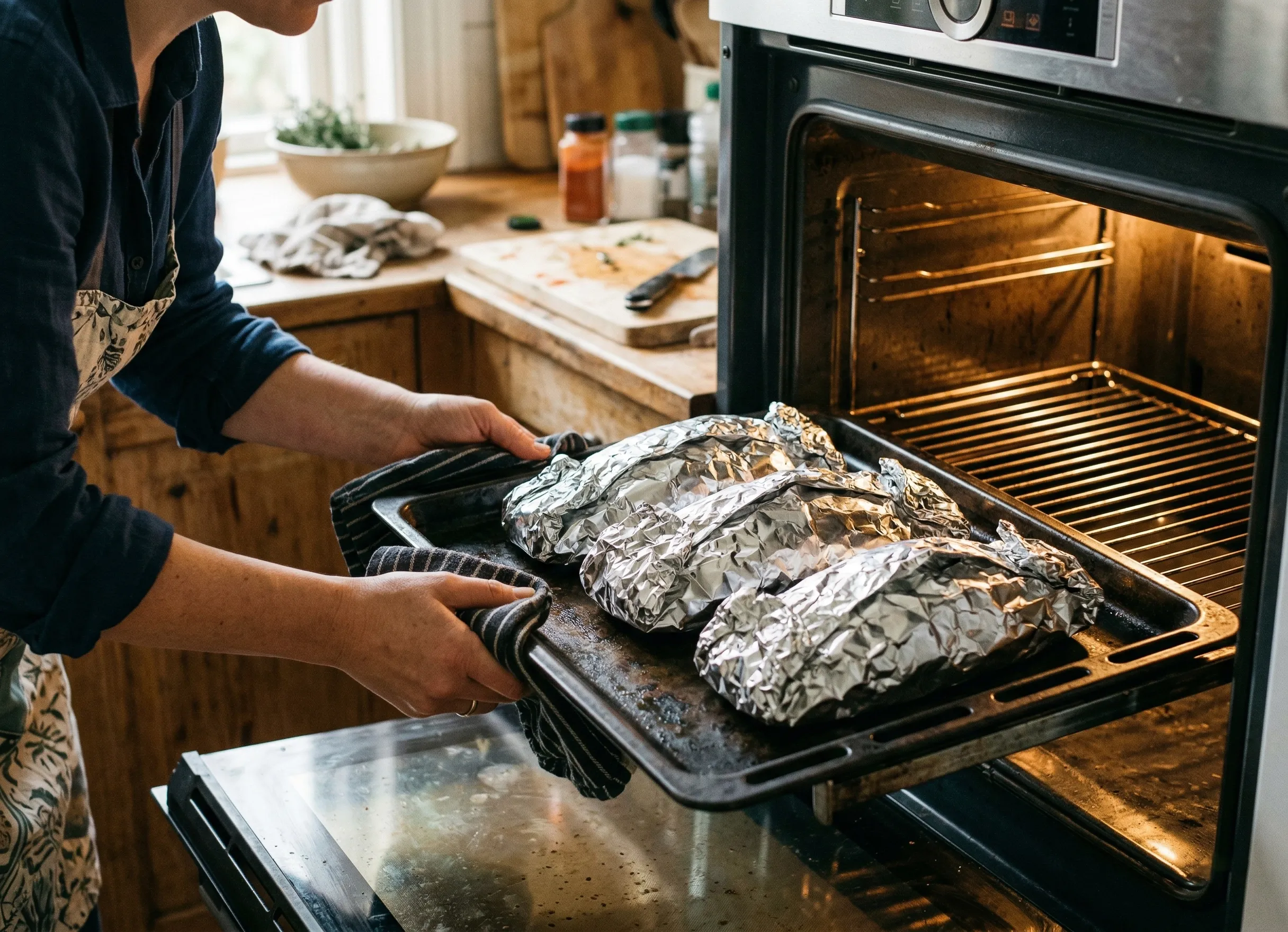 La chaleur tournante peut assécher la surface ; si vous l’utilisez, veillez à ce que la papillote soit parfaitement scellée.